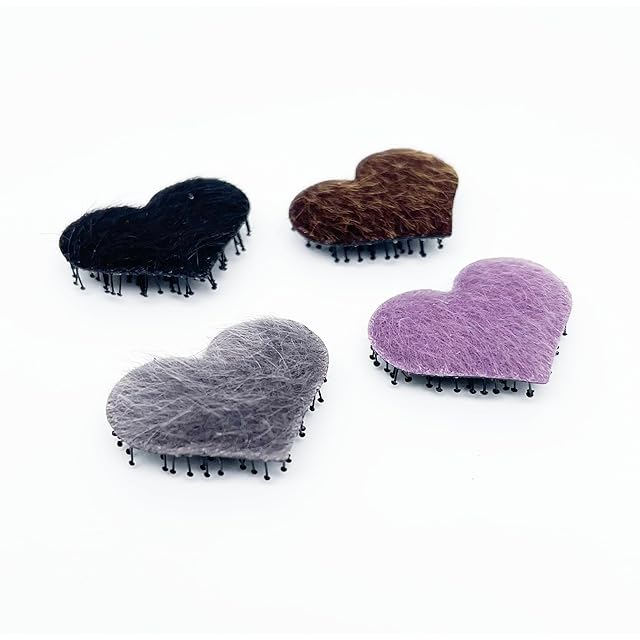 Kamipita フェイクファー仕様 ハート2個入り ファー、髪留め、ヘアピン,ヘアゴム、ヘアアクセ、おしゃれ、あとがつかない、跡がつかない、可愛い(3cm, パープル)