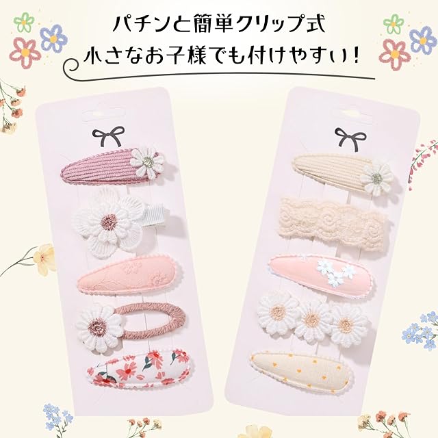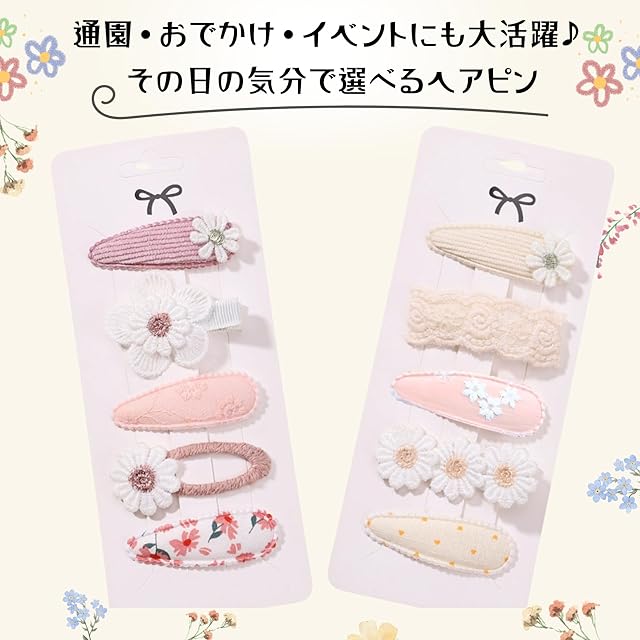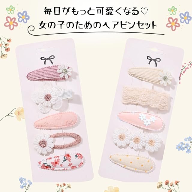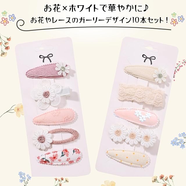 【快適良品スヤスワ】ヘアピン 花 子供 女の子 10点セット 花柄 おしゃれ かわいい ピンク 白 (A)