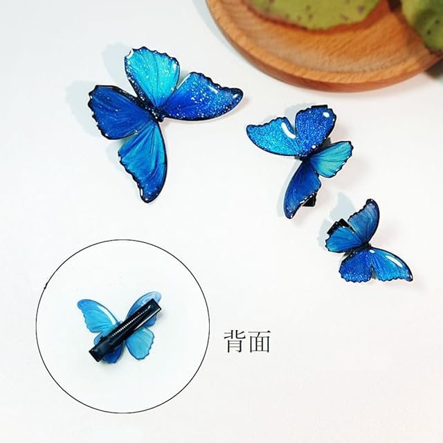 misakinoya美しい バタフラ ヘアクリップ 蝶 ヘアクリップ グラデーション色 髪飾り (青い蝶クリップ(小さめ))