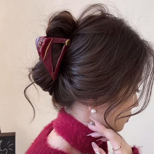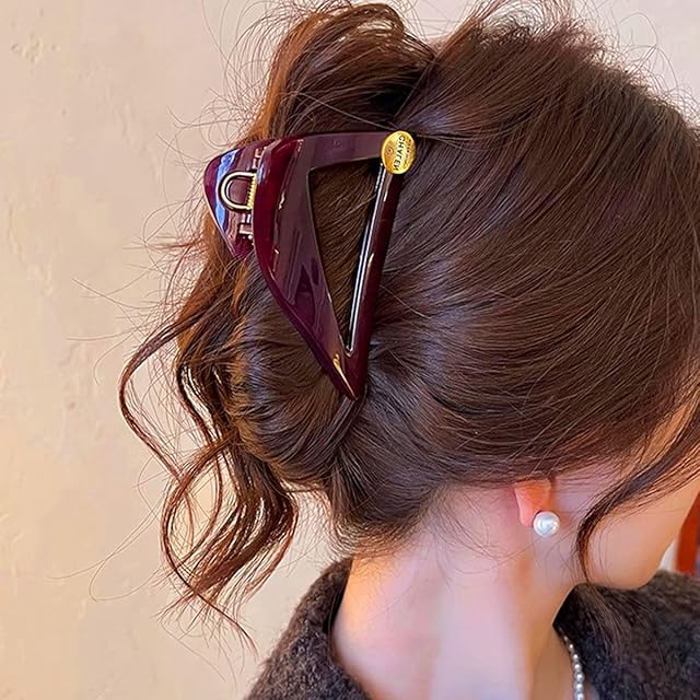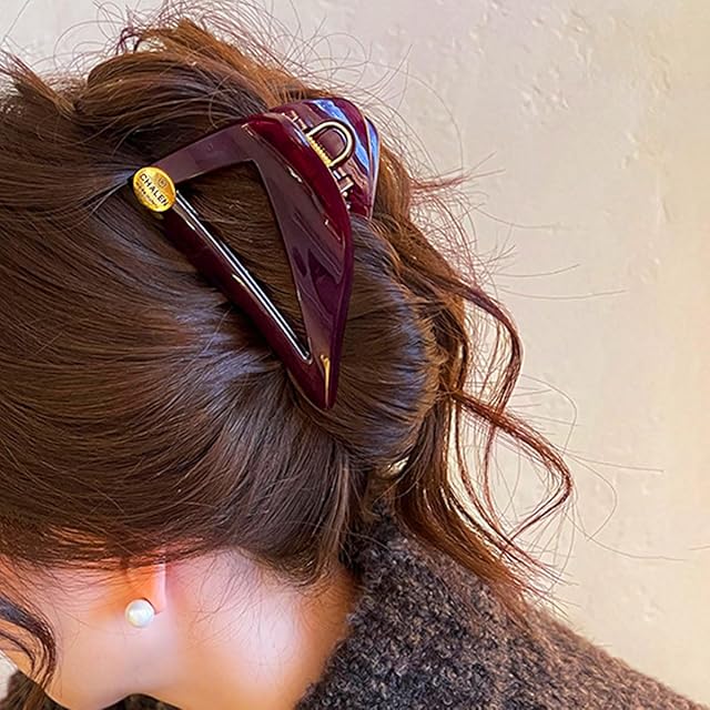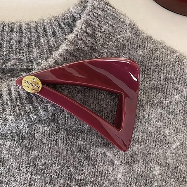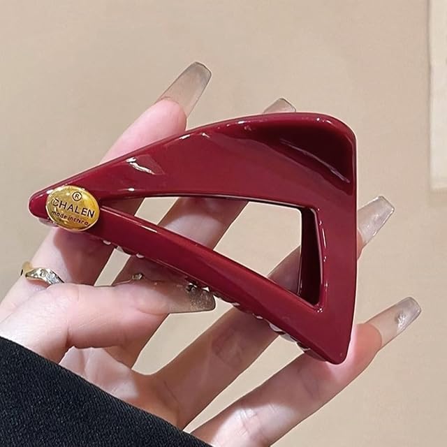 ヘアクリップ レディース 三角形 バンスクリップ 髪留め クリップ 髪飾り シンプル エレガント 大人らしい 上品 強力 しっかりとまる 耐久性 オフィス 通勤 母の日 プレゼント (ダークレッド)