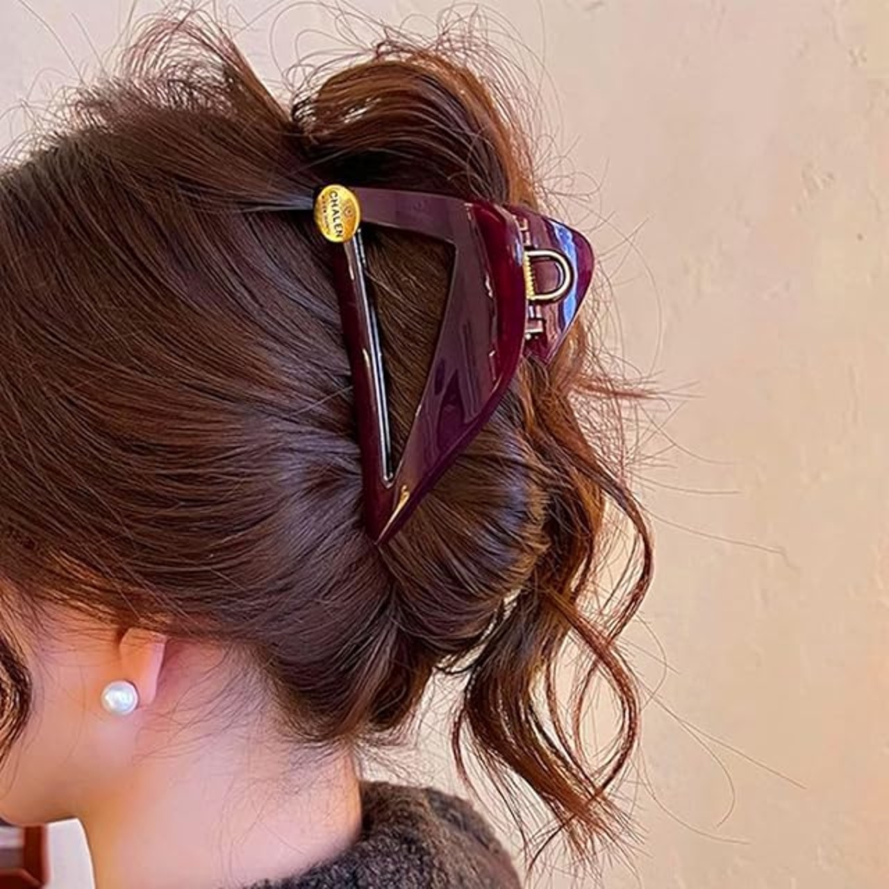 商品名:ヘアクリップ レディース 三角形 バンスクリップ 髪留め クリップ 髪飾り シンプル エレガント 大人らしい 上品 強力 しっかりとまる 耐久性 オフィス 通勤 母の日 プレゼント (ダークレッド)