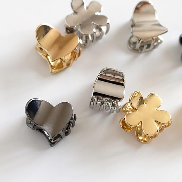EZ PEACH バンスクリップ 小さめ ヘアクリップ ミニ 2個セッ ハート型 前髪留め 髪飾り キュート 大人 キラキラ ヘアクリップ レディース 可愛い 髪留め (Hematite)