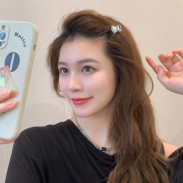 商品名:EZ PEACH バンスクリップ 小さめ ヘアクリップ ミニ 2個セッ ハート型 前髪留め 髪飾り キュート 大人 キラキラ ヘアクリップ レディース 可愛い 髪留め (Hematite)