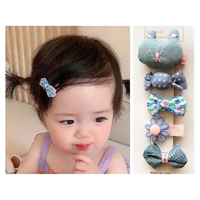 Shomty 5点セット 赤ちゃん ベビー ヘアクリップ ヘアピン 安全 滑り止め 子供 こども ヘア留め 髪留め ヘアアクセサリ ヘア飾り かわいい (ブルー)
