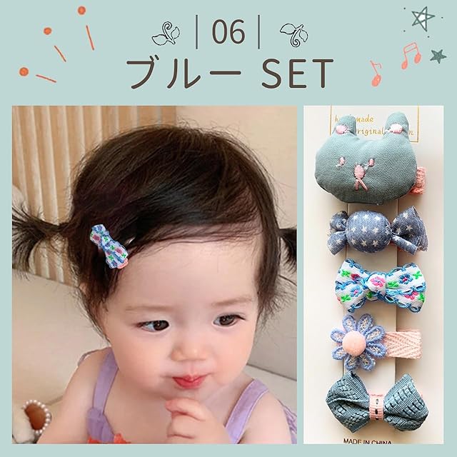 商品名:Shomty 5点セット 赤ちゃん ベビー ヘアクリップ ヘアピン 安全 滑り止め 子供 こども ヘア留め 髪留め ヘアアクセサリ ヘア飾り かわいい (ブルー)