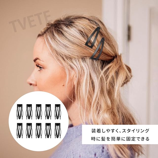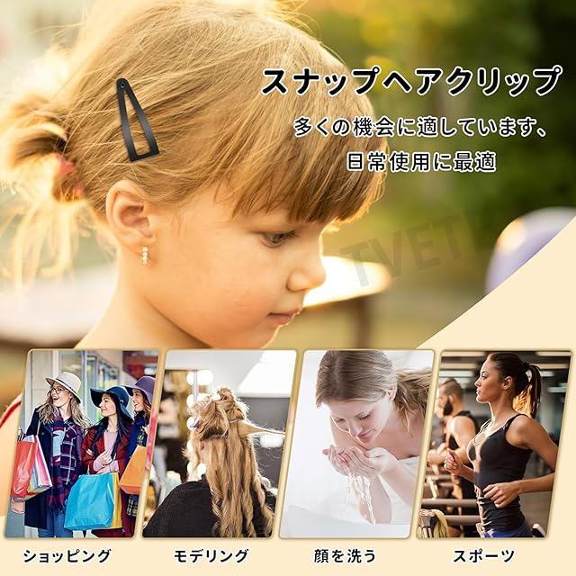 商品名:TVETE 【20個】スナップヘアク ヘアクリップ 前髪 ヘアバレッタ 黒 ヘアピン おしゃれ/シンプル おしゃれ かぶらない/痛くない しっかり固定/外れない 日常用/おしゃれ用 性用/女の子用/子供用