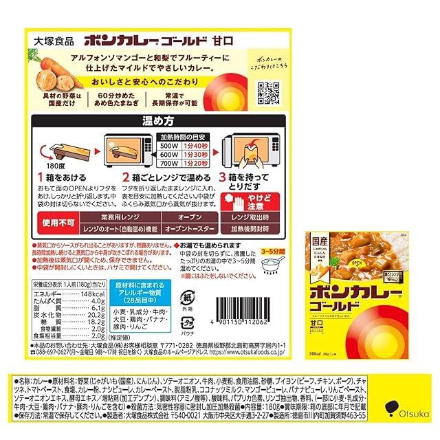 商品名:ボンカレー 大塚食品 ゴールド 甘口 180g×5個 レンジ調理対応