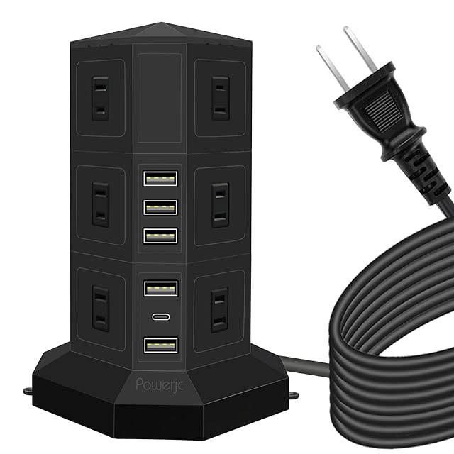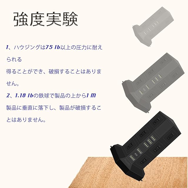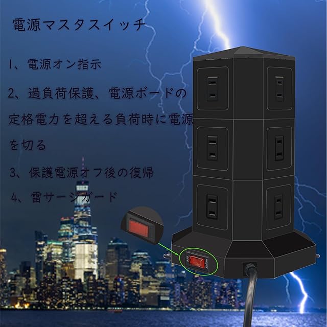 【3d設計】タワー式タップ、多角的なコンセント、使い胜手よりになります。PD Type-C付 USBポートと12つのACコンセントを搭載し、一度に複数の機器に給電、充電することが可能。デスクの上や家庭での使用に最適です。変圧機能がありません。