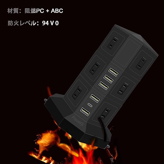 【頼りになる品質】本体は難燃性が最高クラスのPC樹脂素材と高品質の銅導体を採用し、電気火災の防止に有効です。そして、過負荷保護の回路デザイン及び防火材料により、過熱、過電流、ショートなどから充電した家電やデバイスを守ります。