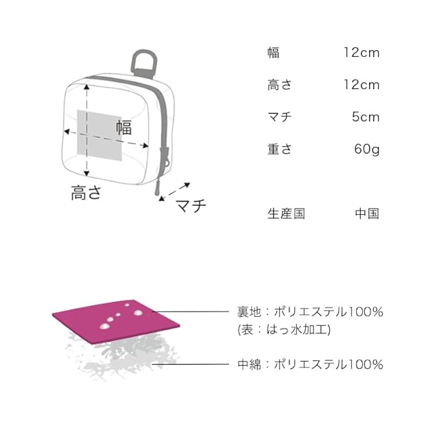 ■ はっ水加工を施したキルティング生地を使用 ■ 背面ポケット1つ、内ポケット3つ ■ キーカラビナ付き ■ Dカン付き ■ 大きく開く開口仕様 ■ 重さ:約60g