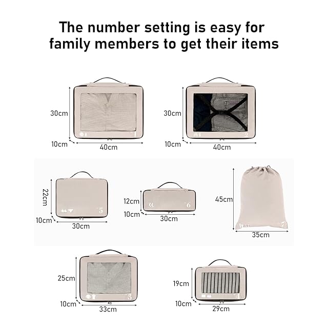 【簡単に識別可能な番号とマシンウォッシャー対応】:番号の設定は、家族が休暇旅行の際に各自の荷物を区別するのに便利です。シンプルなアイコンデザインは、私たちに対応する衣類を入れるよう促すことができます。従来のパッキングキューブは手洗いが必要なのに対し、当社のパッキングバッグはマシンウォッシャーで洗濯可能です。