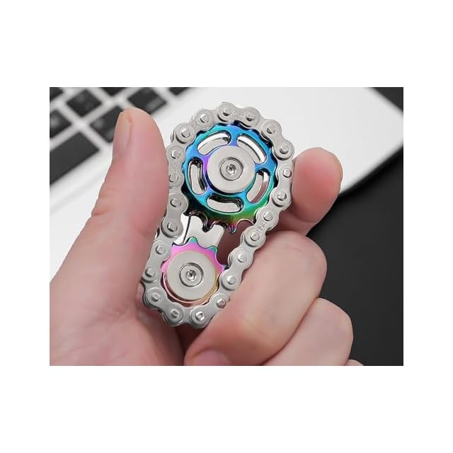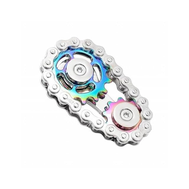 【金属製フィジェットスピナーでストレス解消&集中力アップ】<br/> 本製品は、バイクチェーンをモチーフにした【2ギアデザイン】のユニークなフィジェットスピナーです。素材には亜鉛合金とステンレス鋼を採用し、長期間使用しても摩耗しにくい高い耐久性を備えています。しっかりとした重量感と滑らかな回転が特徴で、指先で軽く回すだけで心地よいスピンを体感できます。<br/><br/> 【独自デザインが生み出す心地よさ】<br/> 一般的なスピナーとは異なり、ギアチェーンのようなリンク構造を取り入れることで、視覚的にも楽しく、回転するたびに独特の存在感を放ちます。静かな回転音なので、オフィスや図書館など静かな場所でも気軽に使用可能です。<br/><br/> 【使用シーンはさまざま】<br/> ・仕事や勉強の合間に、気分転換やリフレッシュ用に<br/> ・長時間の会議や待ち時間で、手持ち無沙汰を解消<br/> ・不安や緊張を和らげたいときのリラックスツールとして<br/> ・インテリアとしてデスク上に置けば、ユニークなアクセントに<br/><br/> 【ストレスを軽減し、集中力を高める】<br/> 指先のシンプルな動作で心を落ち着かせる効果が期待でき、集中力を高めたい場面にも役立ちます。大人のリラックスアイテムとしてだけでなく、子供(6歳以上)の遊び道具としてもおすすめ。親子で楽しむことも可能です。 【安心して選べるギフトアイテム】<br/> 金属製ならではの高級感ある外観と、カラフルなバリエーションで、誕生日プレゼントや記念日の贈り物にも最適です。<br/> コンパクトで持ち運びやすくシンプルな包装なので、気軽にプレゼントすることができます。<br/><br/> このフィジェットスピナーは、【耐久性・デザイン性・使いやすさ】のすべてを兼ね備えた大人から子供まで楽しめる玩具です。ストレス解消、集中力アップ、遊び心を満たす万能アイテムとして、日常に取り入れてみてください。
