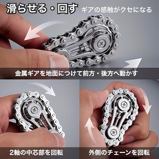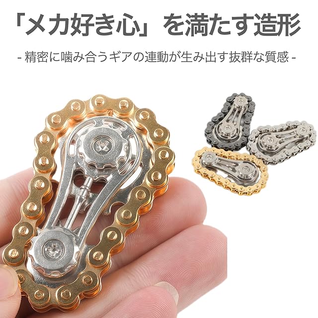【完成されたデザイン】チェーン、ギア、金属の質感──どの角度から見ても美しく仕上げたフィジェットトイ