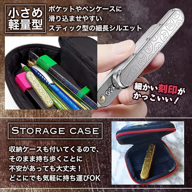 【コンパクト設計で持ち運びに最適】 スティック型の細長シルエットは、手のひらにすっぽり収まるサイズで、ズボンや上着のポケットにも簡単に収納可能。約52gと重さも非常に軽量なため、バッグやポーチに入れてもかさばらず、外出先でもストレスなく持ち運べます。毎日の通勤・通学のお供として、どこでも手軽にフィジェット体験ができ、忙しい日常の中でもリラックス時間を作れます。