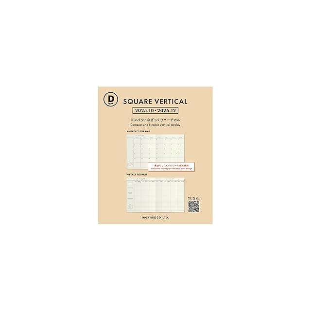 商品名:手帳2026 ハイタイド/Dタイプ リフィル/スクエア 週間バーチカル / 2025年10月始まり / ウィークリースケジュール帳