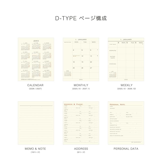 手帳2026 ハイタイド/Dタイプ リフィル/スクエア 週間バーチカル / 2025年10月始まり / ウィークリースケジュール帳