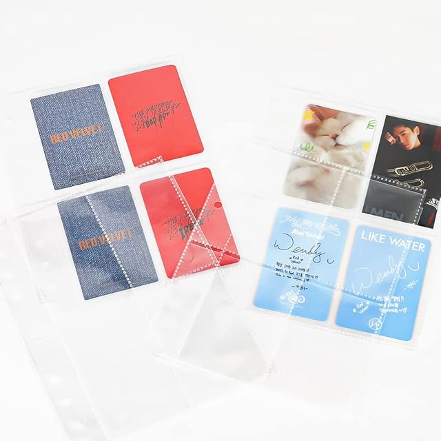 Baskiss 30枚入 リフィル ポケットリフィール 4ポケット A5 6穴 K-POPトレカ・チェキ・ポラロイド・名刺・銀行カード・ブロマイド クリアファイル収納ホルダー 差替式ポケットファイル 全透明