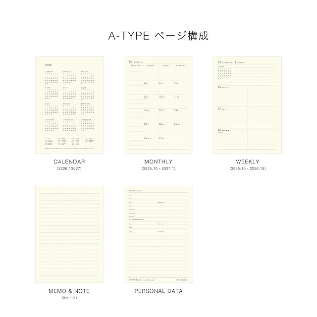 手帳2026 ハイタイド/Aタイプ リフィル / A6 週間ブロック / 2025年10月始まり / ウィークリースケジュール帳