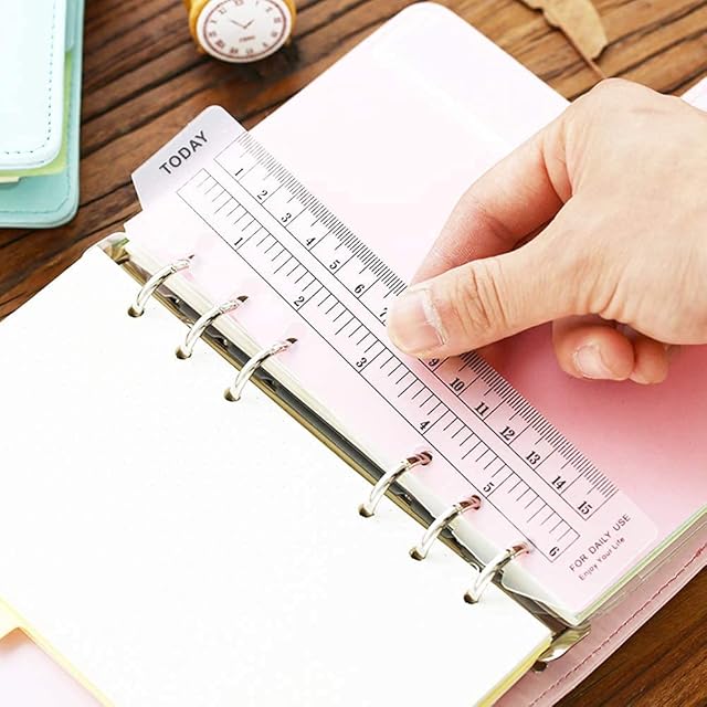 【2枚システム手帳しおり定規】 色:白×1枚+黒×1枚 紙製のインデックスより破れないPP製で、しおり・方眼定規として使えるブックマークです。目盛りは20cmまで計測可能です。TODAYインデックス付きるので、定規としてはもちろん、しおりとしても使えます。