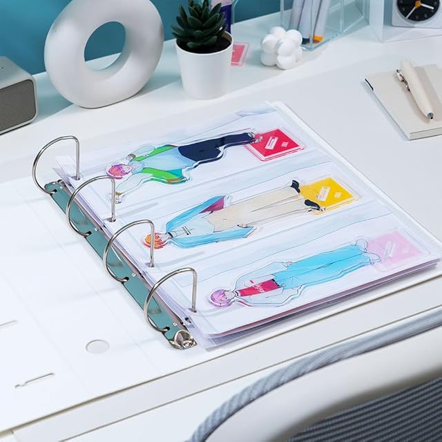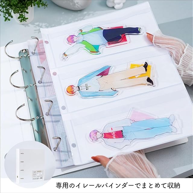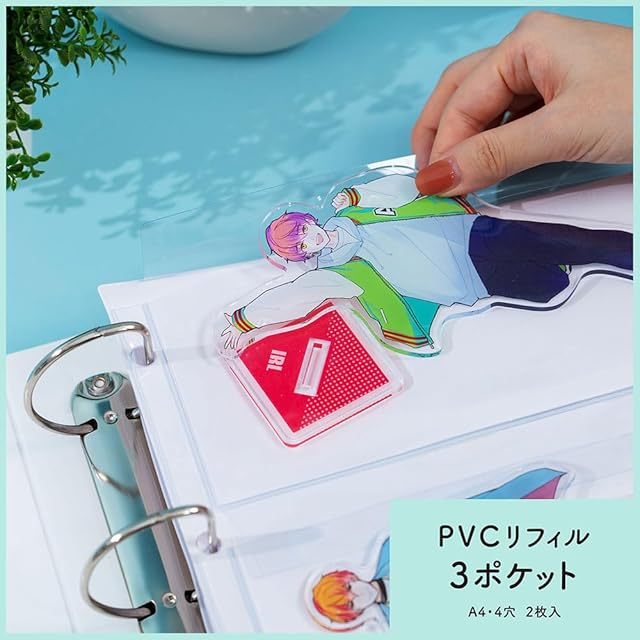 ✅【推し活収納系インフルエンサー『mico』監修】高さ20cm・幅10cm以内のアクスタを美しく保管・収納できる4穴バインダー式リフィル。柔らかいPVC素材と白台紙の組み合わせで、厚みのあるアクスタも安心して収納できます。蓋付きポケット設計で出し入れしやすく、飛び出しも防止。ポケットサイズの異なるイレールPVCリフィルシリーズと組み合わせれば、様々なサイズのアクスタを一冊のバインダーにまとめて収納できます。