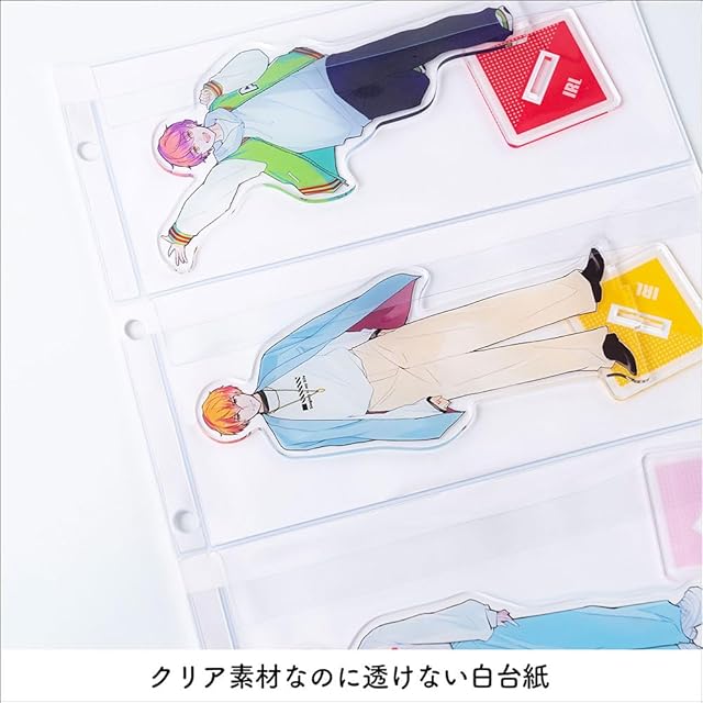 ✅【アクスタを美しく見せる白台紙】透明アクリル素材が多いアクスタの特性を考慮し、背景には白台紙を採用しました。リフィルを何枚重ねても、アクスタの隙間から下のグッズが透けることなく、コレクションの美しさを保ちます。さらに透明度の高いフィルムとの組み合わせにより、キャラクターの色彩や細部を損なうことなく収納できます。