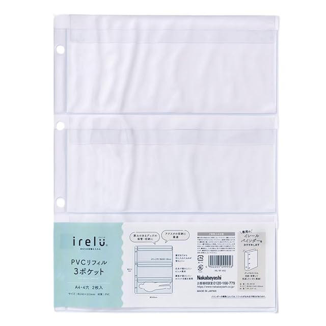 【irelu】 縦長のアクスタ収納 [イレールPVCリフィル 3ポケット] A4 4穴 白台紙 蓋(フラップ)付き 飛び出し防止 IRL-RF-A02【PT1】