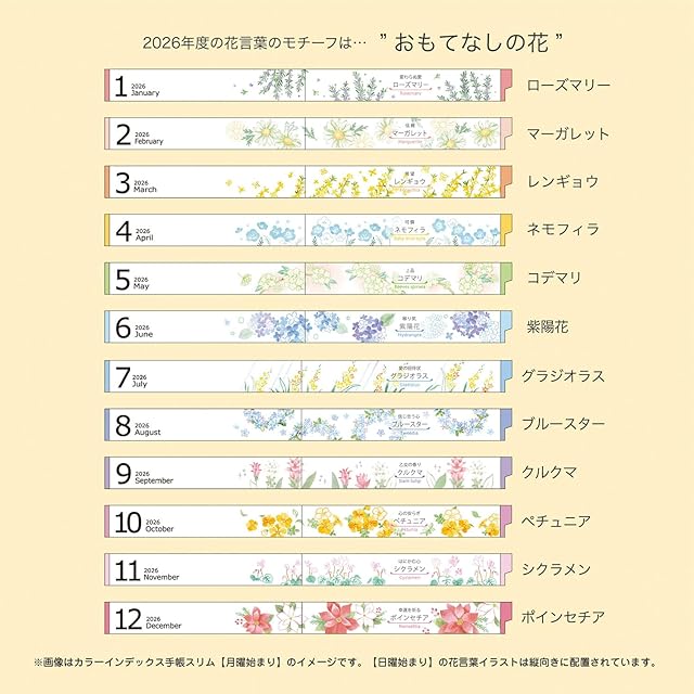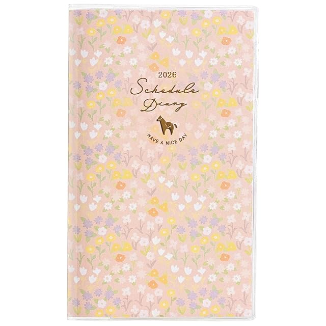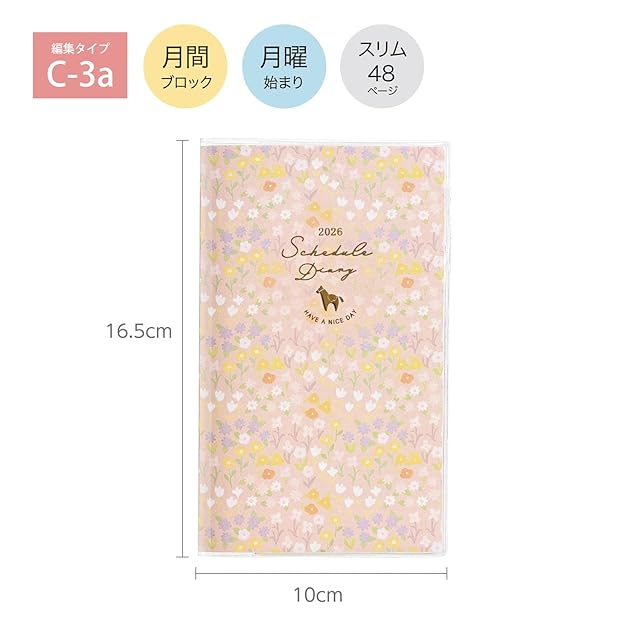 クツワ 手帳 カラーインデックス手帳 2026年 スリム マンスリー 月曜始まり 小花ピンク 126SHA 2025年12月始まり