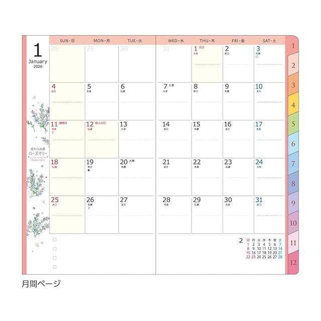 【掲載期間】[日曜始まり]月間:2025年12月~2027年3月