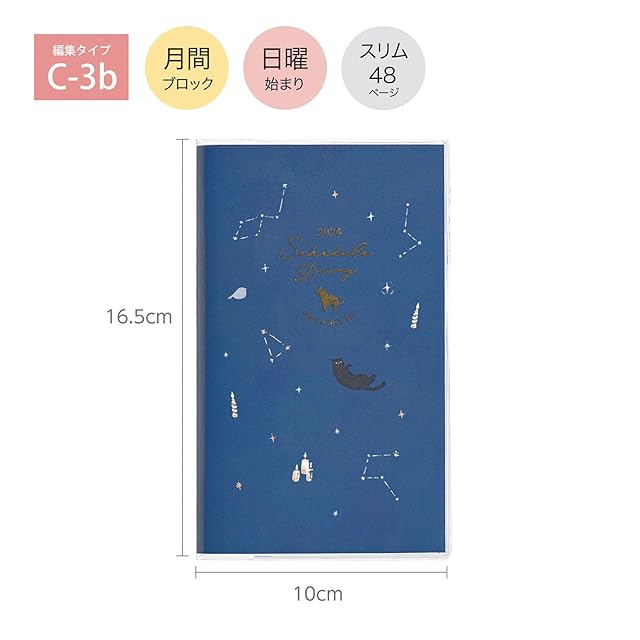 商品名:クツワ 手帳 カラーインデックス手帳 2026年 スリム マンスリー 日曜始まり 夜空の散歩 127SHC 2025年12月始まり
