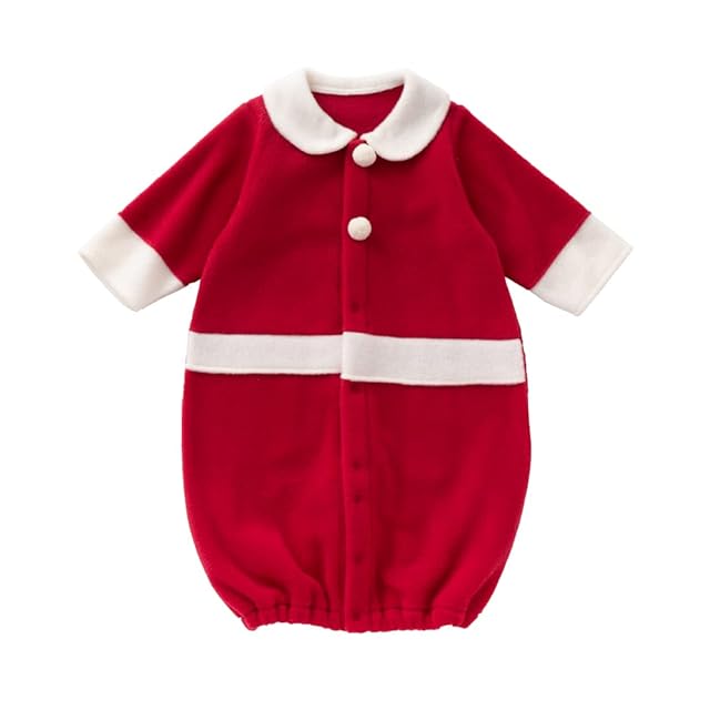 【クリスマスパーティーに】はじめてのクリスマスに思い出を残しませんか?特別なクリスマスに、インスタ映えも間違いなしです。聖なる夜にぴったりの「サンタさんなりきり」ツーウェイオールです。我が子がかわいいサンタに大変身しちゃうクリスマス衣装、お子様のかわいらしさをより一層引き立てます。クリスマスパーティーや記念撮影にはもちろん、誕生日会やイベントなどに最適。プレゼントにもピッタリです! 【サイズ】50~70㎝:着丈51㎝・胸巾27㎝・袖丈21㎝ (新生児期~6ヶ月頃までの赤ちゃん向け) 【成長に合わせて長く着られる】新生児~6ヶ月頃まで長く使えます。ご自宅用にはもちろん、誕生日プレゼント、出産祝いや退院祝いなどのお祝い品としても最適です。※着用期間は大体の目安です。 【股スナップの付け替えで2WAYに】ツーウェイオールはねんねの新生児期には筒型ドレスで、動きが活発になってくる乳児期にはまた割れカバーオールで使えます。 【洗濯について】濃色のものは色落ちする場合がありますので他のものと一緒に洗わないでください。【安心の日本製】安心・安全の日本製。ベビー衣料専門メーカーとして創業 昭和34年以来、赤ちゃんが着るものだから安心・安全・高品質を保つため自社一貫生産にこだわり、生地の裁断から仕上げまで大阪の自社工場で1枚・1枚丁寧に縫い上げています。
