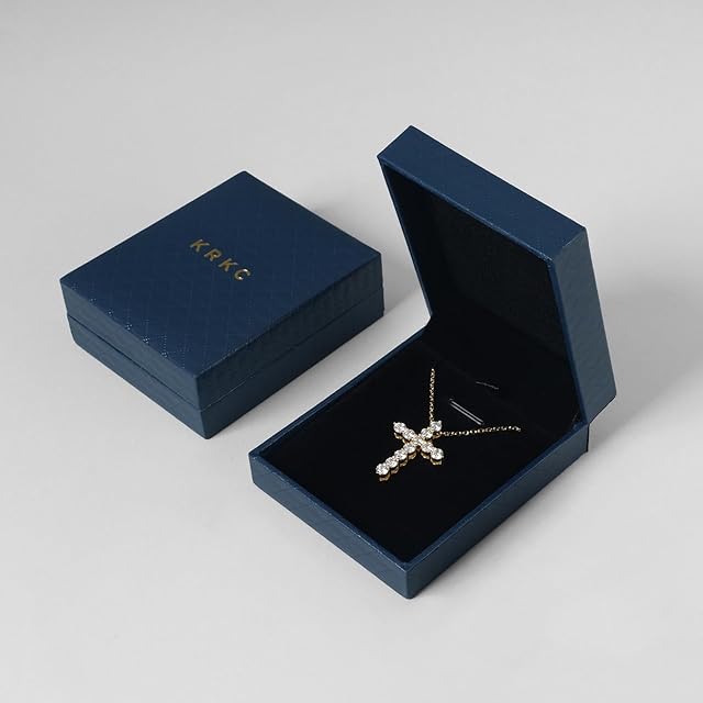 商品名:[KRKC] 十字架ネックレス:誕生日プレゼント モアサナイト/ジルコニア シルバー925 金属アレルギー対応 シルバー/ゴールド カップルネックレス スライドチェーン付き 男女兼用 ペンダントップ 長さ調整可能 誕生日/クリスマス/記念日人気プレゼント 高級ギフトボックス(ジルコニア-ゴールド-定番)
