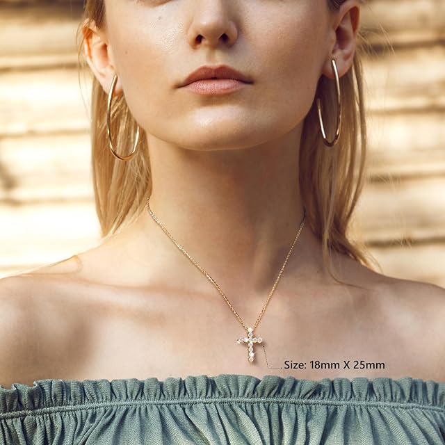 [KRKC] 十字架ネックレス:誕生日プレゼント モアサナイト/ジルコニア シルバー925 金属アレルギー対応 シルバー/ゴールド カップルネックレス スライドチェーン付き 男女兼用 ペンダントップ 長さ調整可能 誕生日/クリスマス/記念日人気プレゼント 高級ギフトボックス(ジルコニア-ゴールド-定番)