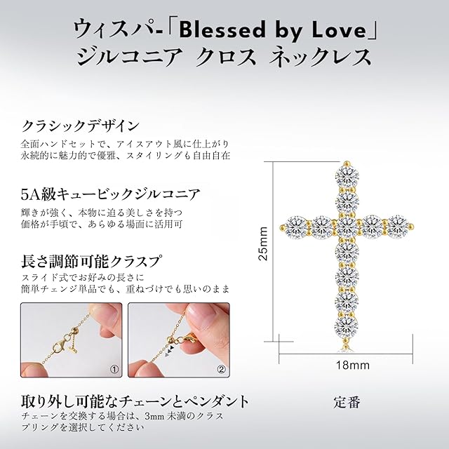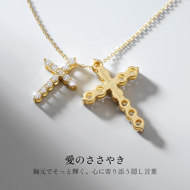 【「Blessed by Love」内部刻印デザイン】感謝の気持ちを輝かせるこの十字架ペンダントは、完璧に調和した宝石で構成され、途切れることのない純粋な光の河を生み出しています。このシームレスなデザインは、持続的で安定した祝福の流れを象徴し、それぞれの宝石が恵みの一瞬を代表しています。この輝きの内なる真実は、その裏面に「Blessed by Love」とささやかれています。これは自分の喜びを表現する素晴らしい方法であり、人生を照らす豊かで尽きることのない愛を思い起こさせる信物です。
