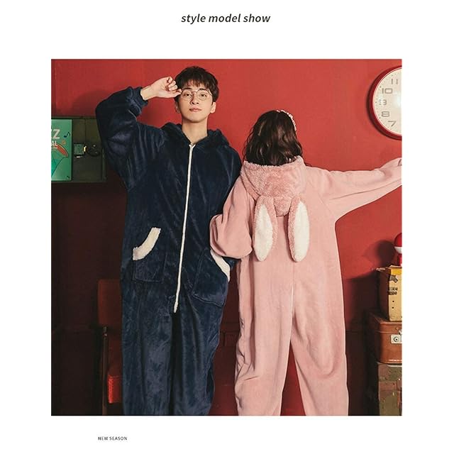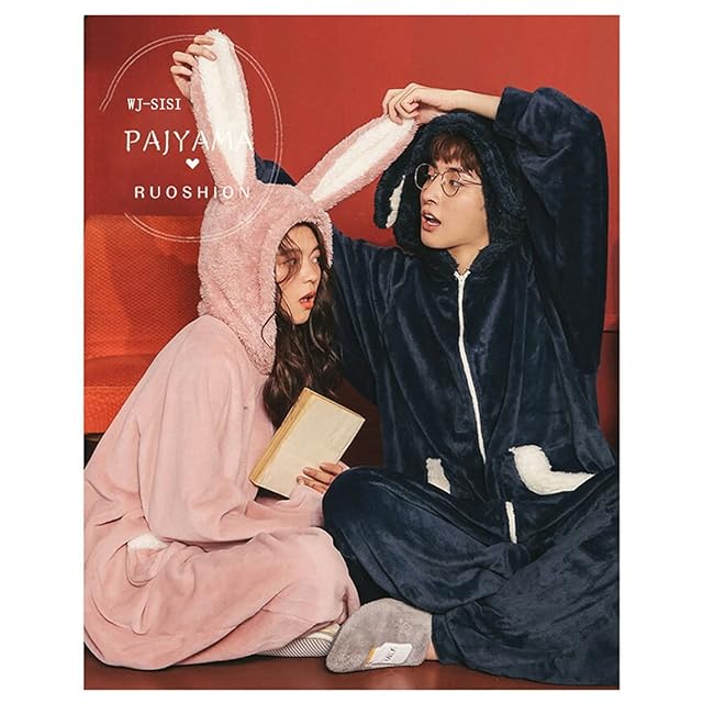 [WJ-SISI] ペアパジャマ カップル 冬ルームウエア ふわもこ うさぎ ペアルック ルームウェア ペアお揃い 部屋着 フランネル オールインワン 着ぐるみ ナイトウェア レディース メンズ パジャマ 韓国 可愛い パジャマ あったか 結婚祝い (ネイビー, XL)