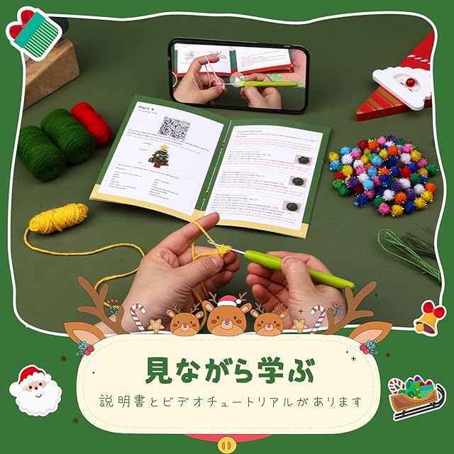 【ホリデー雰囲気を高める】:このかぎ針編みキットを使用して、かわいいクリスマスデコレーションを手編みして、簡単にお祭りの雰囲気を作り出します。