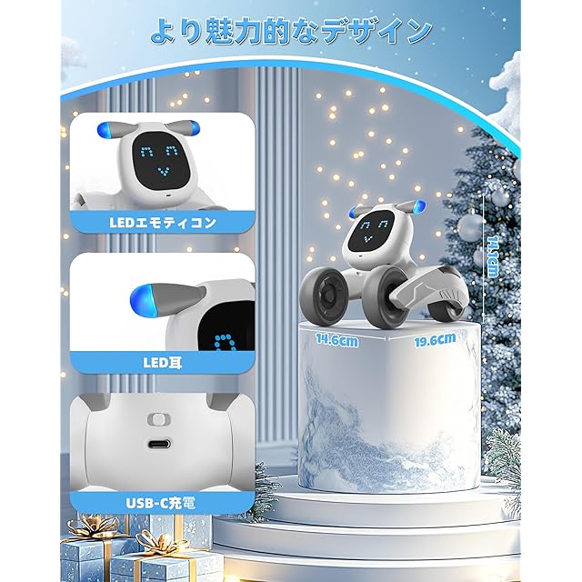 商品名:ロボット リモコン 子供おもちゃ人気 電子ペット 多機能犬 ロボット犬 音声制御 簡単英語おしゃべり プログラム可能 音楽演奏 LED表情の変化 動く犬のおもちゃ USB充電可能 音量調整可能 男の子 女の子 高齢者 小学生 誕生日 クリスマス プレゼント