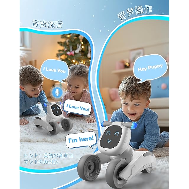 音声で楽しい体験: 「Hey puppy, Happy Birthday」と言うとお誕生日の歌が流れ、「Hey puppy, Merry Christmas」と言うとクリスマスの歌が流れます。この機能を持つ動く犬のおもちゃは、子供たちとのやり取りをより楽しく、魅力的にします。(英語のみ対応)