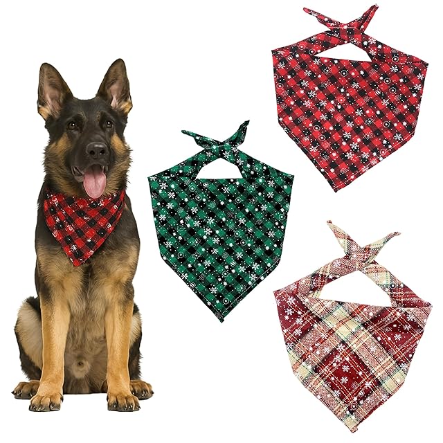 【クリスマス気分を盛り上げる】このバンダナセットは、クリスマスの雰囲気を一層引き立てます。雪の結晶や格子柄のデザインが、愛犬をパーティーの主役に変身させ、家族や友人との楽しいひとときを演出します。