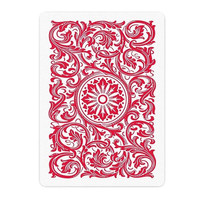 カードタイプ: 52枚のカード1組、ジョーカー2枚が含まれます。 デッキはポーカーサイズで、サイズは3 7/16インチ x 2 1/2インチです。 これは「ワイド」サイズと見なされます。 レターサイズはジャンボでカードが読みやすくなっています。 各文字と記号の長さは約1/2インチです。