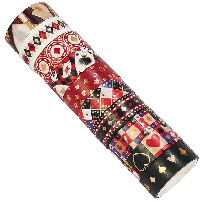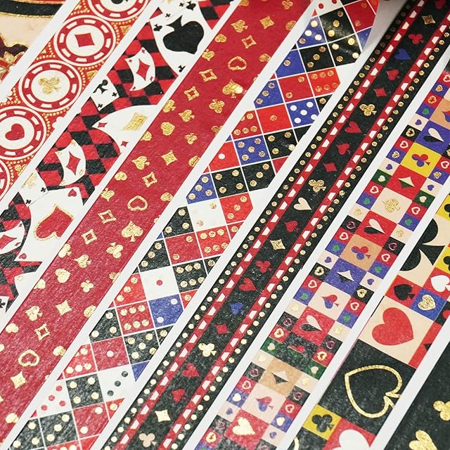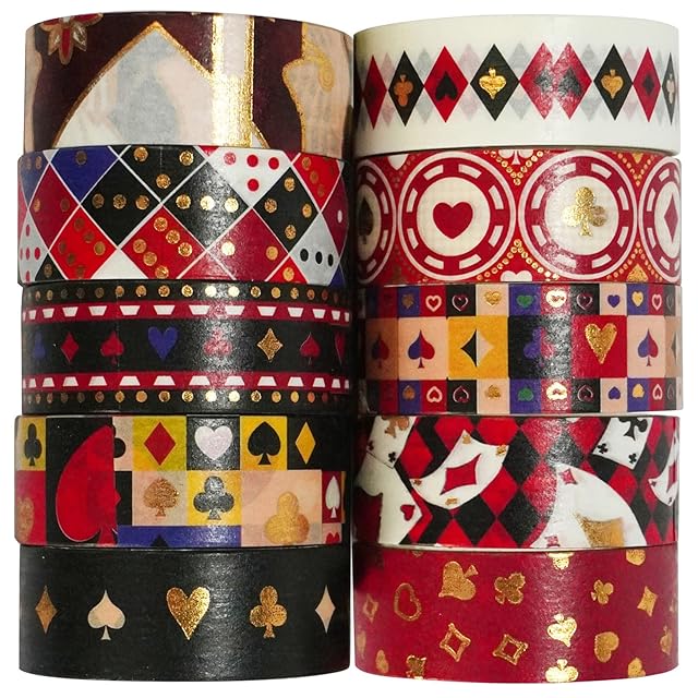 ポーカーパターン マスキングテープ セット 10巻 創造性 金箔押し 和紙テープ 女性のスタイル ワシテープ 包装、DIY工芸品 (トランプ)