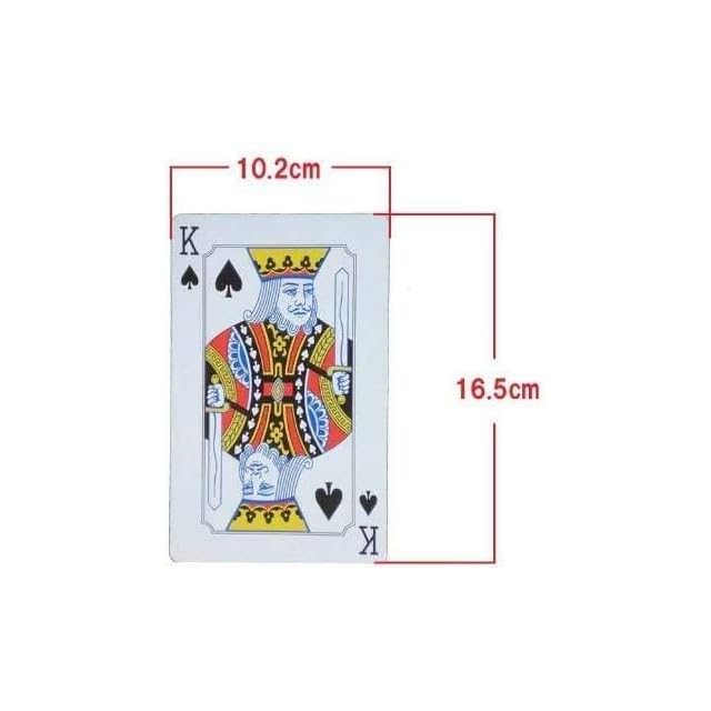 たて16.5cm、よこ10.2cmの特大トランプです。 通常のトランプの約2倍の大きさはなかなかありません! テーブルゲームの基本であるトランプが1セットあれば家族の会話も弾みます♪ ポーカー、7ならべ、ブラックジャックなどお好みのゲームで友達と、家族で団らんをお楽しみ下さい。 尚、量産品につきカード表面の多少の汚れ等はご容赦下さい。 輸入品のため箱は傷んでおりますので、はご容赦下さい。