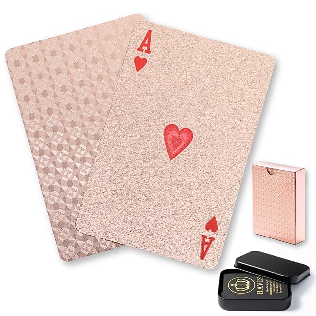 商品名:RAVIS トランプ ゴールド 防水 フレックスカード マジック おしゃれ 手品 高級 かわいい パーティー ケース付 54枚 (ピンクゴールド)