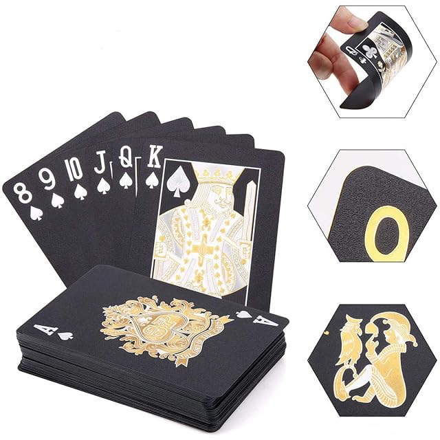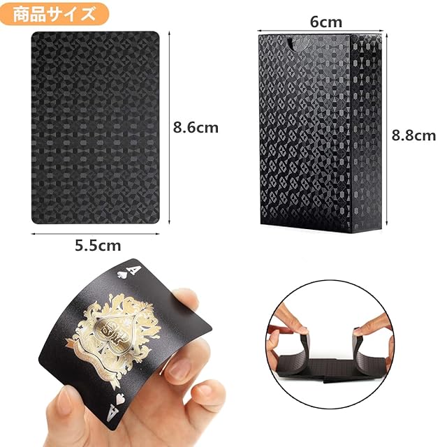 【独特なデザイン】:トランプはクラシックなブラックとエレガントなゴールドを採用、目を引くデザインです。手触りがスムーズの上おしゃれなルックス、快適なゲーム体験をご提供いただけます。