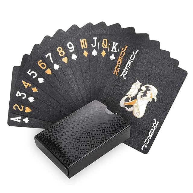 商品名:サムコス トランプ 54枚 プラスチック製 マジックトランプ ブラック ゴールド 防水 金箔 集会 ゲーム パーティー パーティー用品 (ブラック 箱無し)