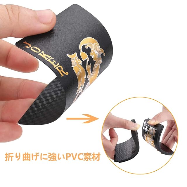 【プレミアム素材】:材料はPVC、防水力が高いです。紙の材質と違って、水洗いができるので、汚れ・濡れに心配不要、通常のトランプより使用寿命が長いです。