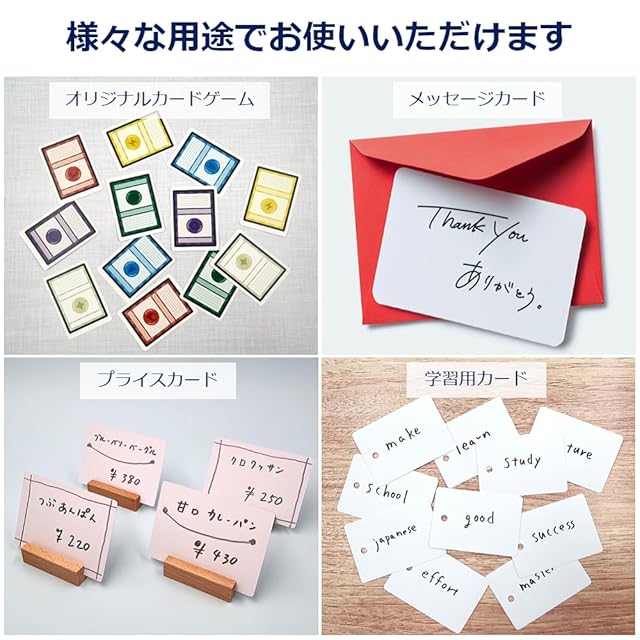 用途:自作トランプ、自作トレーディングカード、メッセージカード、グリーティングカード、プライスカード、タグ、単語帳、アクセサリー台紙