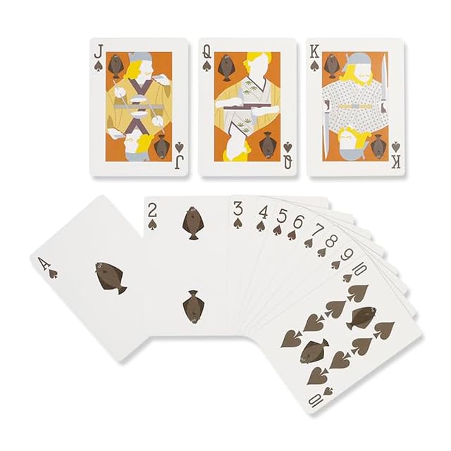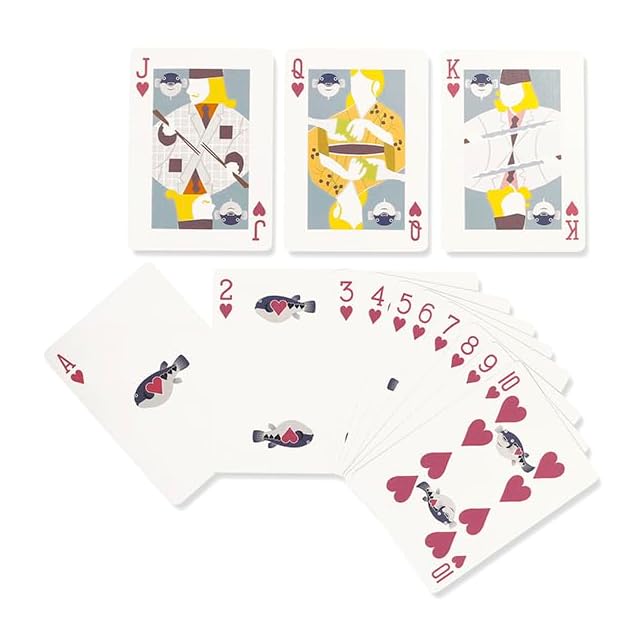 世界中のマジシャンが愛用するトランプ、Bicycle(バイスクル)と伊東屋のおいしい魚シリーズがコラボレーションしました。<br>ハートやスペードなどのスートがタイ、フグ、ヒラメ、アンコウの可愛い魚に変身!<br>キングはおいしい料理を振るまう板前、クイーンはおかみさん、ジャックは見習いの料理人が描かれています。<br>カード裏面はオリジナルデザインのマーメイド柄です。<br>トランプで遊びながら、カラフルなイラストレーションをお楽しみください。<br><br>「バイスクル」とは世界最大のシェアを持つU.S.プレイング・カード社のトランプ。<br>アメリカ・ケンタッキー州で製造しています。<br>1885年に誕生したバイスクルは、カジノのポーカーなどで愛用され、世界中で認知されています。<br>カード表面の独特なエンボス加工により滑りが良く、リボンスプレッド(トランプを直線状・弧状に広げること)がしやすいため、マジックアイテムとしても愛用されています。