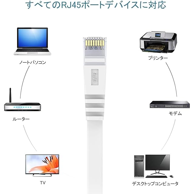 商品名:LANケーブル 8M CAT6 カテゴリー6 RJ45 イーサネットケーブル ネットワーク フラットケーブル やわらか 爪折れ防止 モデム ルーター PS3 PS4 Xbox等に対応 ホワイト