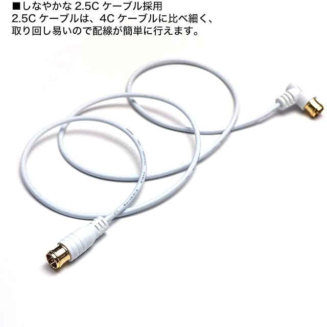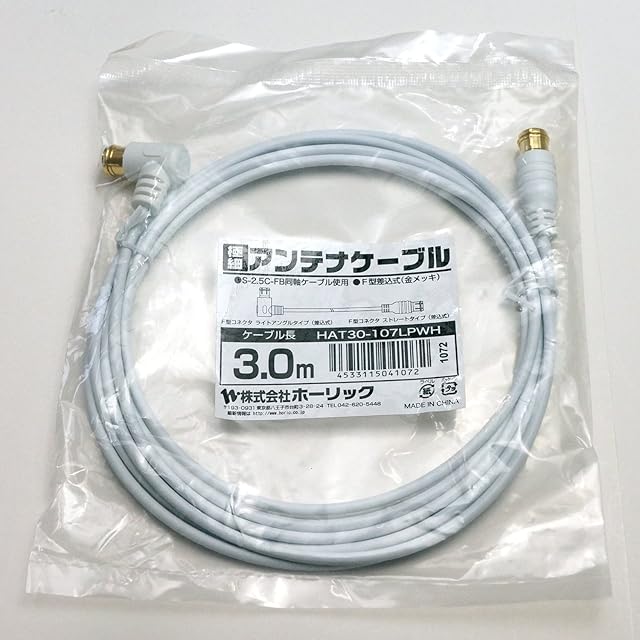 商品名:ホーリック 極細アンテナケーブル S-2.5C-FB同軸 3m 【4K8K放送(3224MHz)/BS/CS/地デジ/CATV 対応】 ホワイト L字差込式/差込式コネクタ HAT30-107LPWH