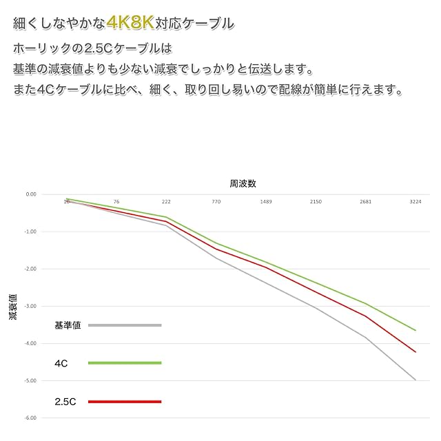 [4K8K衛星放送対応] [ケーブルは細く柔軟で配線が簡単] [2重シールドで信号干渉を低減] [金メッキコネクタで耐久性向上]